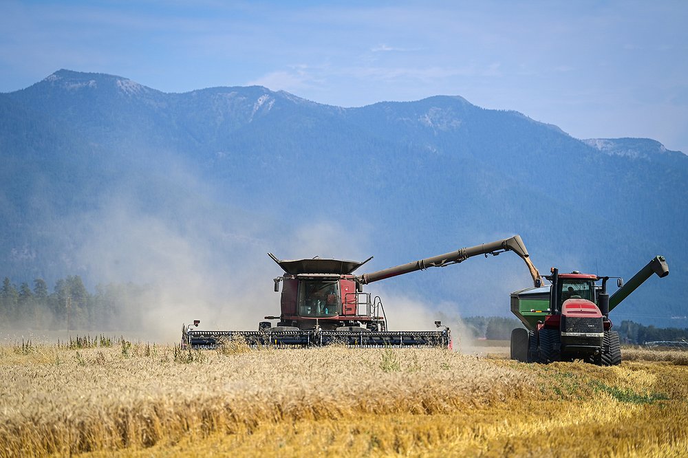 Farmers gather wheat from the fields adjacent to Columbia Falls Stage on Tuesday, Sept. 3. (Casey Kreider/Daily Inter Lake)Casey Kreider