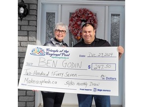 Currently, we are selling raffle tickets for our largest fundraiser to date. Blok Pools and Hot Tubs has generously donated a six-seater hot tub valued at over $14,000 as the first prize; GSX (Griff Slaughter Experience) has contributed a five-hour outing on the water in his boat accommodating 15 people as the second prize valued at $1,500; and Sport Chek in Pembroke has provided a stand-up paddle board as the third prize valued at $790. Additionally, the City of Pembroke has donated a full-year adult membership at the Kinsmen Pool valued at $435. We would like to express our gratitude to everyone who has contributed these remarkable prizes.