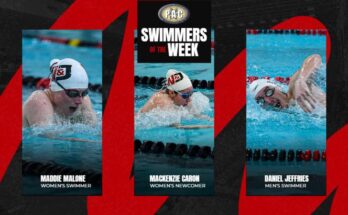 In the 50 free, Reott claimed second with a time of 24.48, while Greene’s time of 26.03 earned her a third-place finish. Edinboro dominated the 200 individual medley with Beggs taking first at 2:18.42 and Bugara finishing second at 2:21.98. Beggs also won first in the 100-yard breaststroke with a time of 1:09.85.