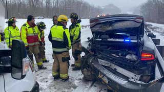 A Pennsylvania State Police vehicle was involved in a snowy pileup on Interstate 80 Sunday, Jan. 19, 2025.