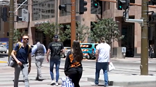 Hot summer season day in downtown Phoenix: Sights and sounds as folks cope