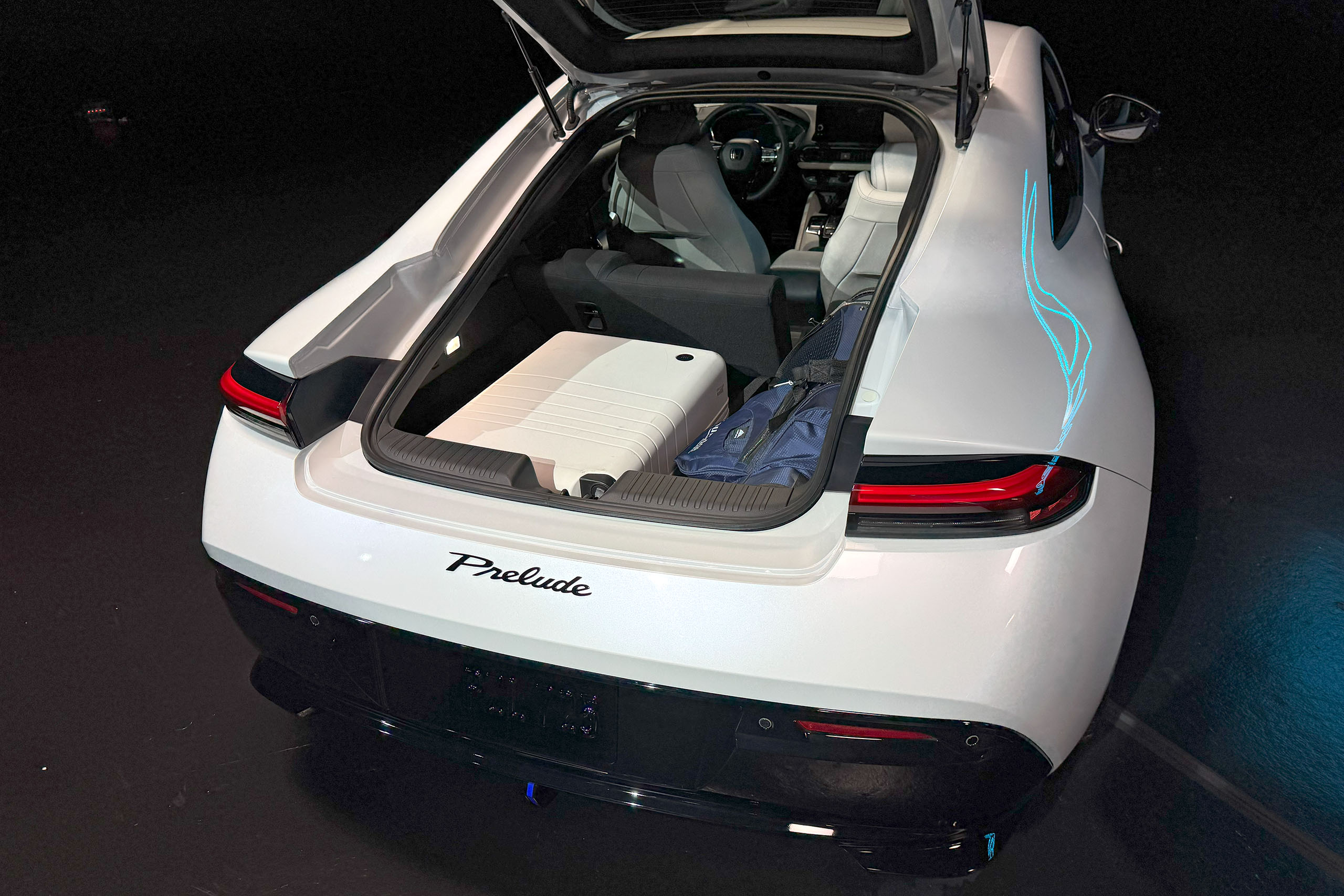 This Prelude marks the primary liftback within the nameplate’s historical past. Cargo entry, unsurprisingly, additionally appears a bit restricted—higher, maybe, than the Toyota Supra‘s weirdly bean-shaped opening, however narrower than the Nissan Z‘s, albeit with a extra conveniently low load flooring. The rear seatbacks do fold flat at the very least, permitting sufficient room for golf baggage, as each coupe should.