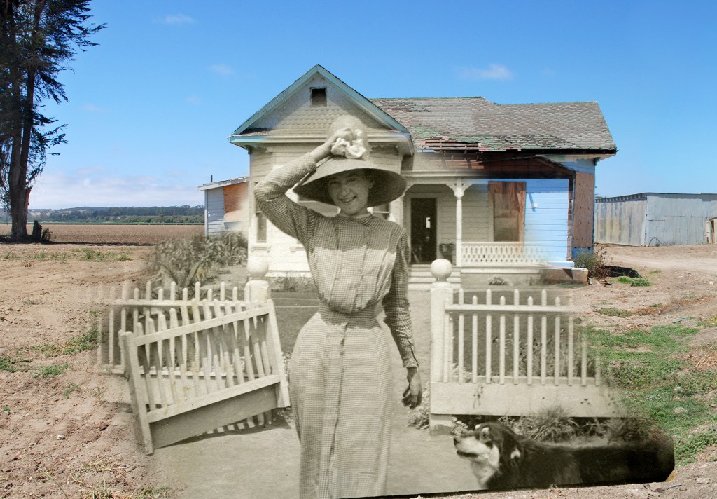 At the middle of a 1910 view of a modest, one-story Victorian house is a younger, smiling lady dressed within the type of the day. Lucy Bendasher stands in entrance of her mom’s home, outdoors a low picket gate someplace on the western fringe of Lompoc. Subtle hues of the now deserted and deteriorating home bleed out and in.