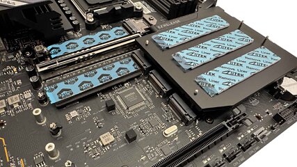 A standard supply of bandwidth sharing is between PCIe Gen 5 M.2 and USB4, right here the second PCIe Gen 5 M.2 slot shares bandwidth with these ports. Using an SSD on this slot will see the USB4 ports disabled and for some motive the M.2 port drops from x4 to x2 as nicely. This will see the PCIe Gen 5 SSD pace reduce in half, however you possibly can drive it again as much as x4 utilizing a swap within the EFI. So lengthy as you are glad to lose the USB4 ports, it is due to this fact doable to run two PCIe Gen 5 SSDs concurrently. The solely different sharing happens with the third M.2 slot—which is restricted to PCIe Gen 3—and the SATA ports, with the latter being disabled if the previous is used, whereas utilizing the fifth M.2 slot will see the second PCIE slot reduce from x4 to x2.