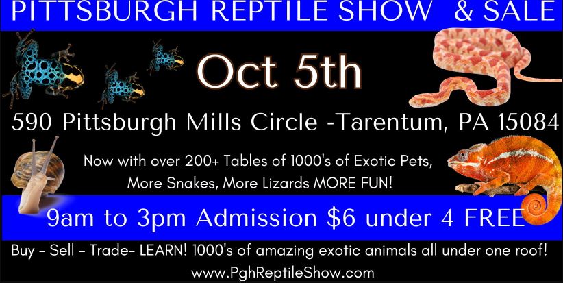 Sunday, Oct. 5: Pittsburgh Reptile Show and Sale, 9 a.m. to three p.m.