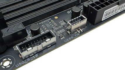 Being X870E, USB4 is assured, and we get two Type-C USB4 40 Gbps ports that double as DisplayPort outputs. A 3rd Type-C output caps out at USB 3.2 10 Gbps, however does have 30 W energy supply. We even have three Type-A ten Gbps ports, six Type-A USB 3.0 and a pair of USB 2.0 ports, bringing the overall Type-A ports to a powerful 11. The rear I/O panel additionally gives a CMOS clear button in addition to USB BIOS Flashback and third video output within the type of HDMI. We additionally get 5 Gbps Ethernet and Wi-Fi 7 with screwless fittings, alongside each commonplace audio jacks and an optical output.