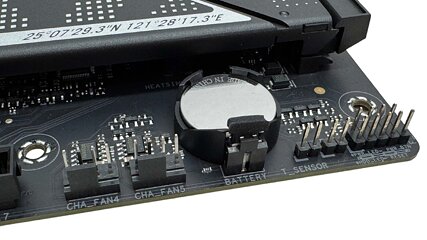 Of the eight 4-pin fan headers, three are positioned within the high proper nook of the PCB, which is well-placed for coping with massive liquid coolers and pumps. Not so good, although, are the truth that all fan headers are restricted to only 12 W/1 A, which implies quite a lot of higher-power fan setups on the market will probably be pushing near that restrict operating three or extra off a single header. Splitting throughout a number of headers is straightforward, however perhaps not one thing every thing considers. We’d a lot favor to see double this quantity at the least on the CPU fan header, however the CPU_FAN and CPU_OPT headers are at the least configured for shared management out of the field. The similar nook additionally homes a 3-pin fan header and energy button in addition to the CPU over-volt header.
