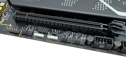 The base of the PCB has a 2-pin thermistor header, which might tie a thermistor or coolant probe to fan speeds within the EFI and software program, together with two extra fan headers. The closing three fan headers are positioned additional alongside in the direction of the rear of the motherboard, which sadly means there are none close to the rear I-O panel for powering rear case followers. Along with two extra 3-pin ARGB headers, most different headers comparable to audio and USB 2.0 are positioned right here beneath the second PCIe slot, which has 4 lanes and helps up PCIe Gen 4, so cable tidying must be easy.