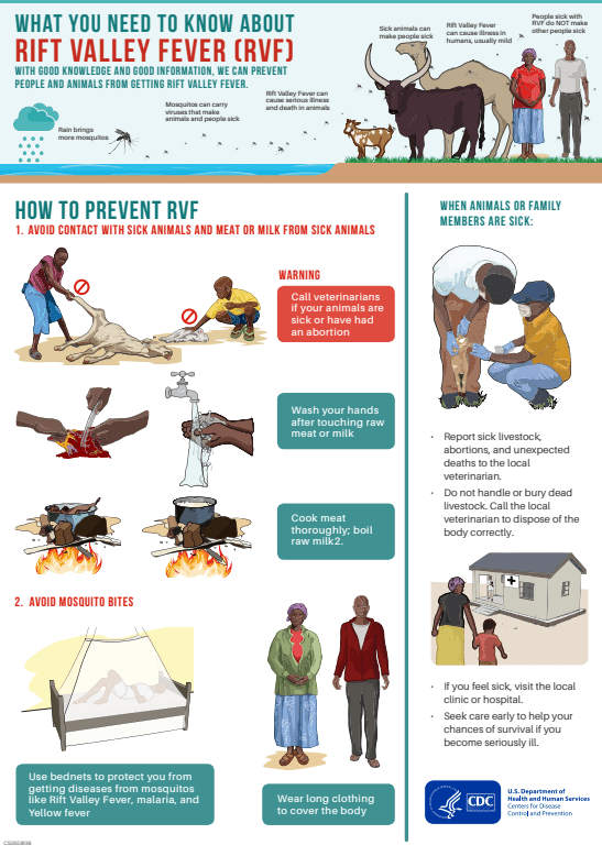Rift Valley Fever (RVF) is an acute viral hemorrhagic fever that causes sickness in livestock (equivalent to cattle, buffalo, sheep, goats, and camels) and folks.