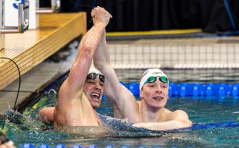 • Won two particular person occasions (100-yard breaststroke and 200-yard breaststroke) and one relay (200-yard medley relay).