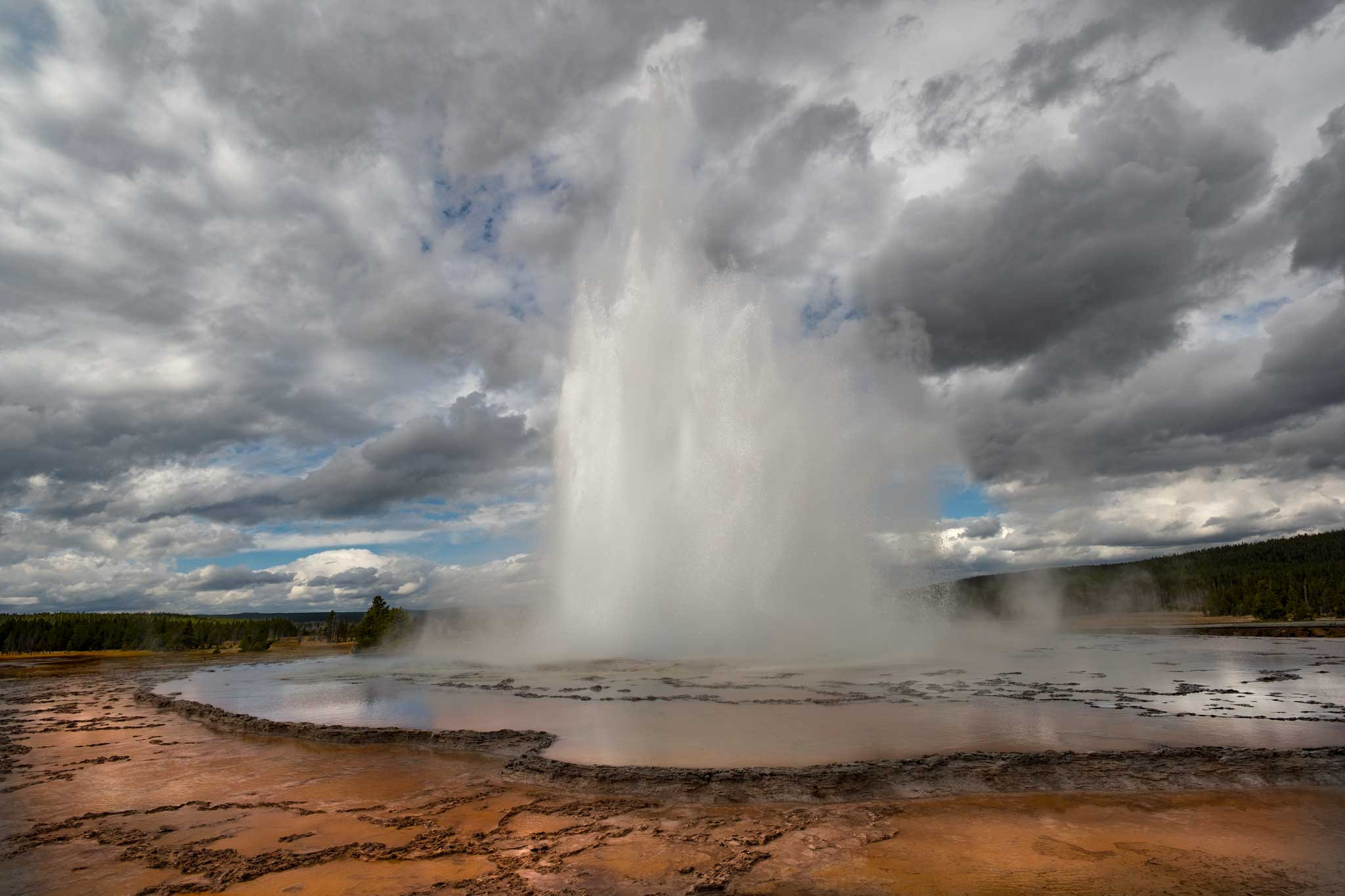 We had improbable gentle and glorious timing on this journey, simply a few weeks in the past. Fall colour was excellent. There was distinctive gentle at Oxbow Bend (first picture beneath).  We witnessed no less than 5 geysers going off. Schwabacher’s Landing had glorious gentle each mornings we visited. The solely factor lacking was an early snowfall (and maybe a moose within the water!). You can see my take on this subject’s Featured Print. The geyser featured beneath went off for 5 minutes, rested and went off once more. Then time and again! Absolutely thoughts blowing! It was way more thrilling to us than Old Faithful. Because it sometimes goes off each 9 to fifteen hours, our timing was pure luck, however a nicely appreciated reward for our hike to the situation. And we had been amongst solely about ten witnesses to the efficiency.