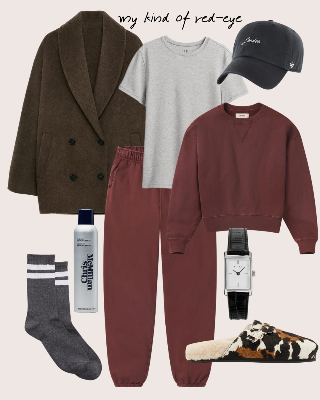 Ok, let’s begin with the toughest journey outfits (in my view): red-eyes…