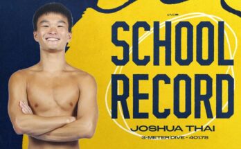 Aidan Wang set a brand new report on the 1-meter with a rating of 378.45.