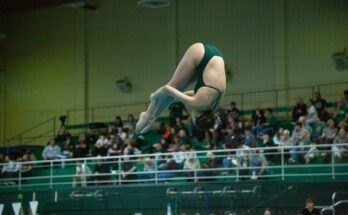 • Junior Kat Anticev got here in fifth within the 1,650-yard freestyle (17:23.04), whereas sophomore Ellie Reinhart positioned fifth within the 200-yard backstroke (2:04.32).