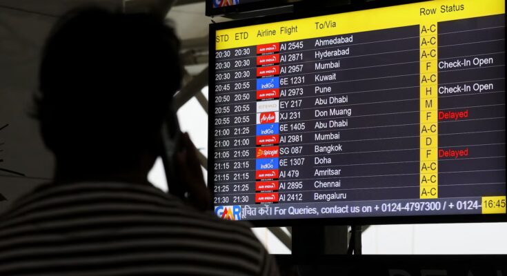 Item 1 of 4 A display screen shows delays in IndiGo flights on the Indira Gandhi International Airport in Delhi, India, November 29, 2025. REUTERS/Bhawika Chhabra