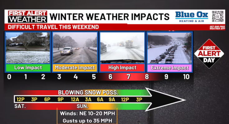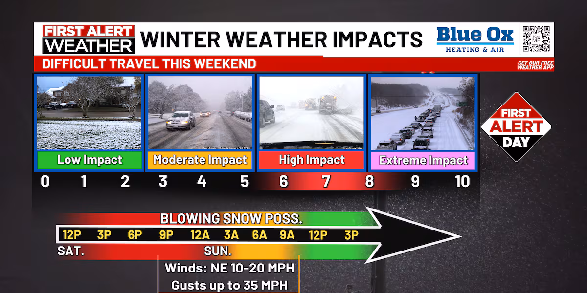 Road situations will proceed to deteriorate all through the day, and journey might be troublesome as a consequence of snow-covered roads, diminished visibility, and heavy snowfall at instances. Winds will strengthen later this night with gusts of 20-35 mph potential. Blowing snow in open and rural areas will turn out to be a priority, particularly in case you journey outdoors of metropolis limits.