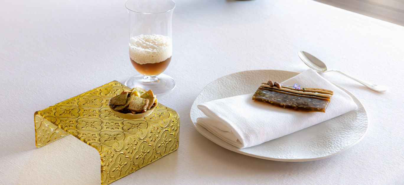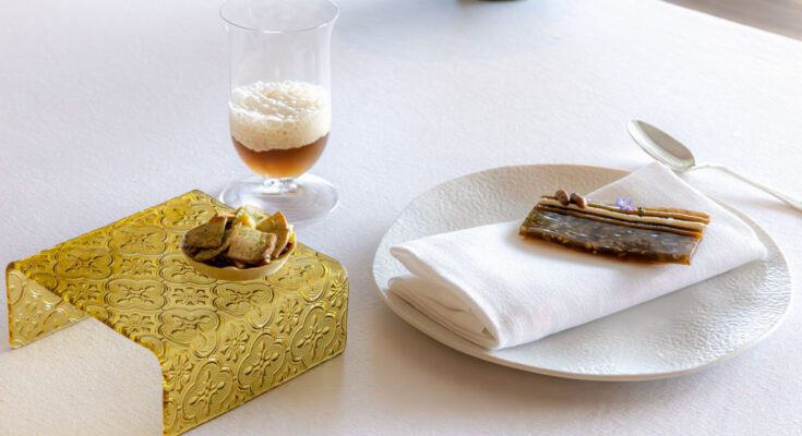 The opening act arrived as a procession of canapés, each as sculptural because it was fleeting. The ceps snack was earthy and crisp, dissolving like parchment on the tongue, adopted by the fragile sea tartlet that shimmered with brine and the faint sweetness of shellfish. The forest cappuccino got here subsequent, its aroma rising in smooth curls of woodland heat earlier than giving solution to a cockle tartlet whose flavour sang of salt and foam. The anchovy flan lingered longest, silken and deep, a whisper of the ocean dressed as dessert.