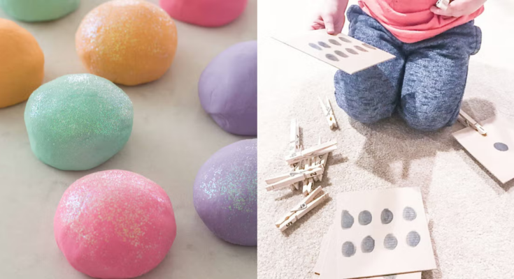 As they grow old, they’ll wish to apply their numbers. Make it enjoyable with this matching recreation. Put completely different quantities of circles on completely different items of cardboard, then put numerals on completely different garments pins. Toddlers should depend the dots, then connect the garments pin with the appropriate numeral on it (which can be good for his or her high quality motor coordination).
