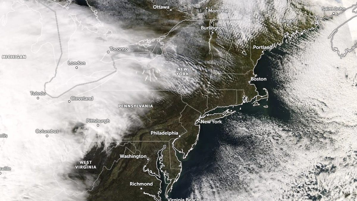 Satellite picture of U.S. East Coast on November 29, 2025. Credit: NOAA/GOES-19, Zoom Earth, The Watchers