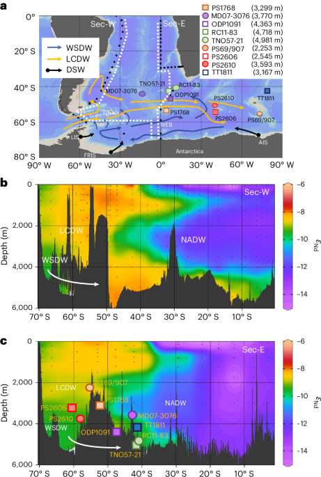 Williams, T. J. et al. Neodymium isotope proof for coupled Southern Ocean circulation and Antarctic local weather all through the final 118,000 years. Quat. Sci. Rev. 260, 106915 (2021).