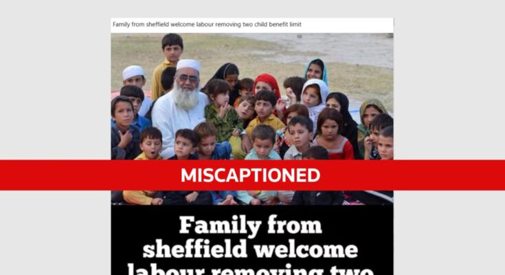 An outdated {photograph} of a father with a few of his 36 youngsters in Pakistan has been miscaptioned on-line to falsely recommend it exhibits a household in Britain celebrating a change to the UK’s welfare system.