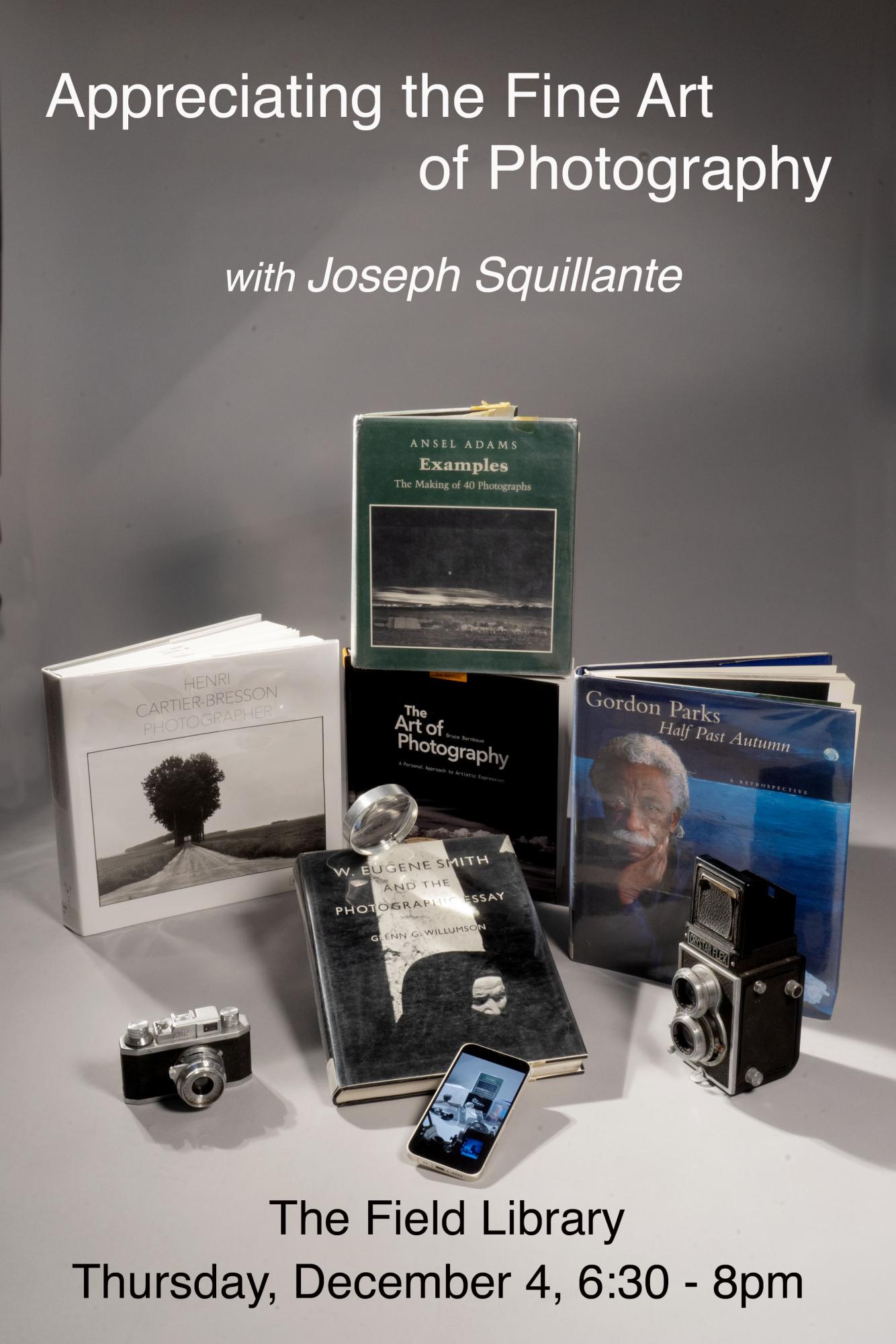The Field Library homes a trove of photographic treasures, collected in books by famend artists. Using these photographs as examples, Squillante will clarify what makes {a photograph} work, how the authors function, and why their decisions stay related. He will talk about gentle and composition. How Ansel Adams builds depth. The narrative rhythm in Gordon Parks. The quiet in W. Eugene Smith. The anticipation in Henri Cartier-Bresson. “I want to share this magical and luminous medium. Without light, there is no photography,” he says, a private mantra he has adopted since 1972.