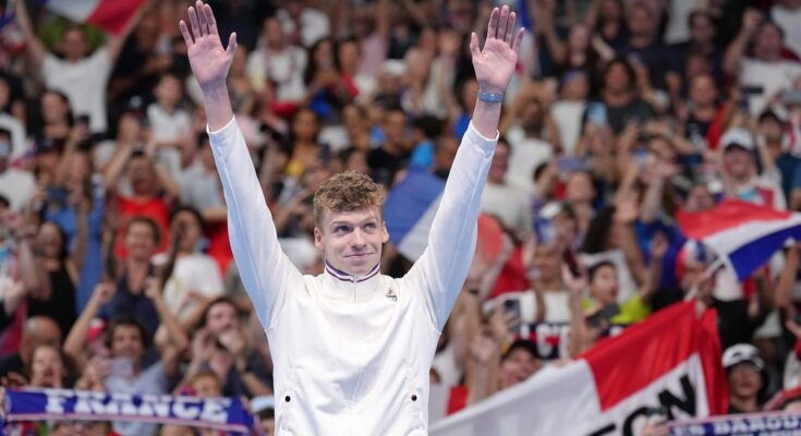There are two variations of the present world’s biggest males’s swimmer, Léon Marchand, final seen by Olympic audiences bare-chested however for his gold medal on the Trocadero in entrance of tens of 1000’s of screaming Parisians, and later escorting the Olympic flame to the closing ceremonies.