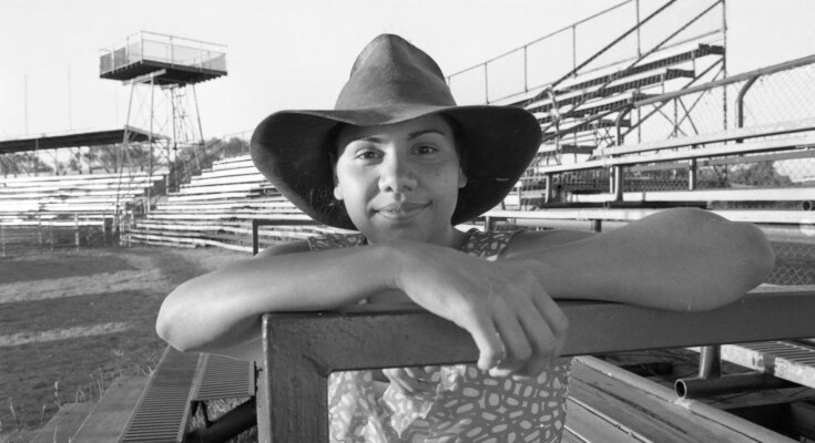 Aboriginal actress Deborah Mailman on the set of the documentary Black Chicks Talking, photographed by Jo-Ann Drissen in Mount Isa, Queensland, in 2000.