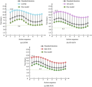 Fig 12 exhibits the outcomes of the computation time comparability between LSTM and ST-GCN and the proposed mannequin. Fig 12(c) exhibits the results of computing time comparability between MS-TCN and the proposed mannequin. In Fig 12, the grey circled line signifies the usual time, the blue circled line signifies the time used for the LSTM mannequin, and the inexperienced circled line signifies the circled line of the proposed mannequin below research. In Fig 12(a), throughout the recognition of butterfly pose by the 4 fashions, the development of every recognition time change curve of the LSTM mannequin is in line with the usual time, however its distinction from the usual time is most 3 s. In Fig 12(b), the popularity time development of ST-GCN has some hole with the usual time development, however its most time distinction is 4.1 s. In Fig 12(c), the MS-TCN time distinction may be as small as 2.1 s, however there may be nonetheless some hole in comparison with the detection time of the research proposed mannequin. The shortest detection time of the proposed mannequin is 4.5 s, which is considerably shorter than the 13 s of LSTM, 12.2 s of ST-GCN, and 11.1 s of MS-TCN. The research is examined with Top-Ok accuracy (Top-Ok), efficient variety of recognition and common working time as metrics. Table 3 shows the check outcomes.