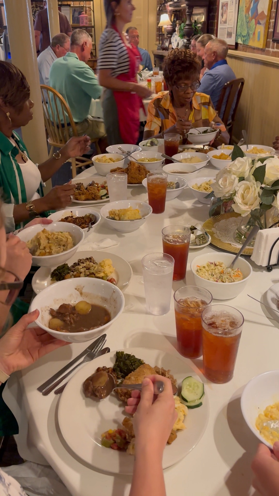 We entered to a welcoming employees and after the blessing we began to dig in. The desk is crammed with now lower than 20 facet dishes. The hen was a number of the greatest we now have ever had. All the meals was scrumptious.