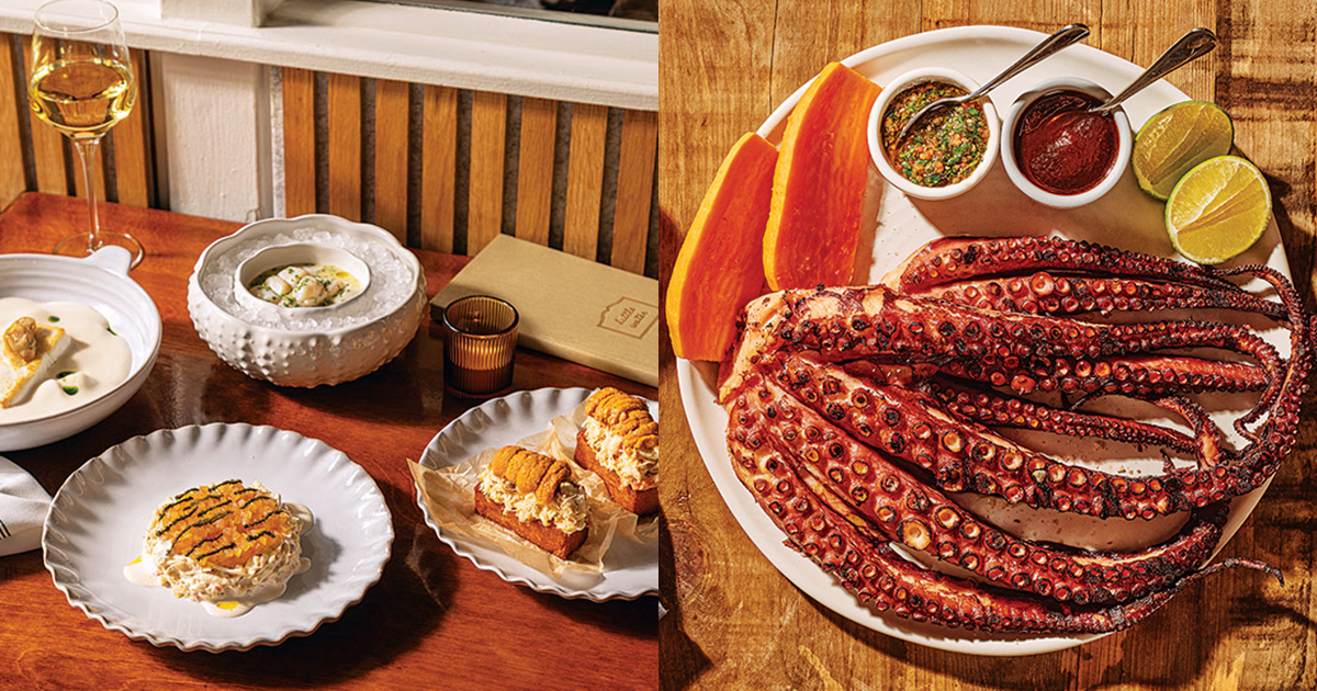 Spread at Little Water and Amá’s wood-fired octopus / Photography by Gab Bonghi (initially printed in “Little Water: A Poetic Exploration of Land, Water, and Comfort Food)” and Bre Furlong (initially printed in “This New Philly Restaurant Is Raising the Bar for Mexican Food“)