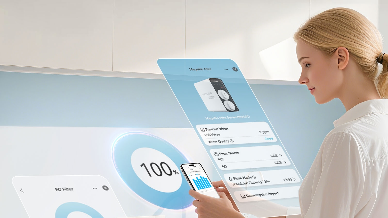 Unlike conventional RO techniques that disappear underneath your sink and keep largely invisible till one thing goes flawed, MIZUDO places your water high quality proper in your cellphone. Through its devoted smartphone app, you may monitor: