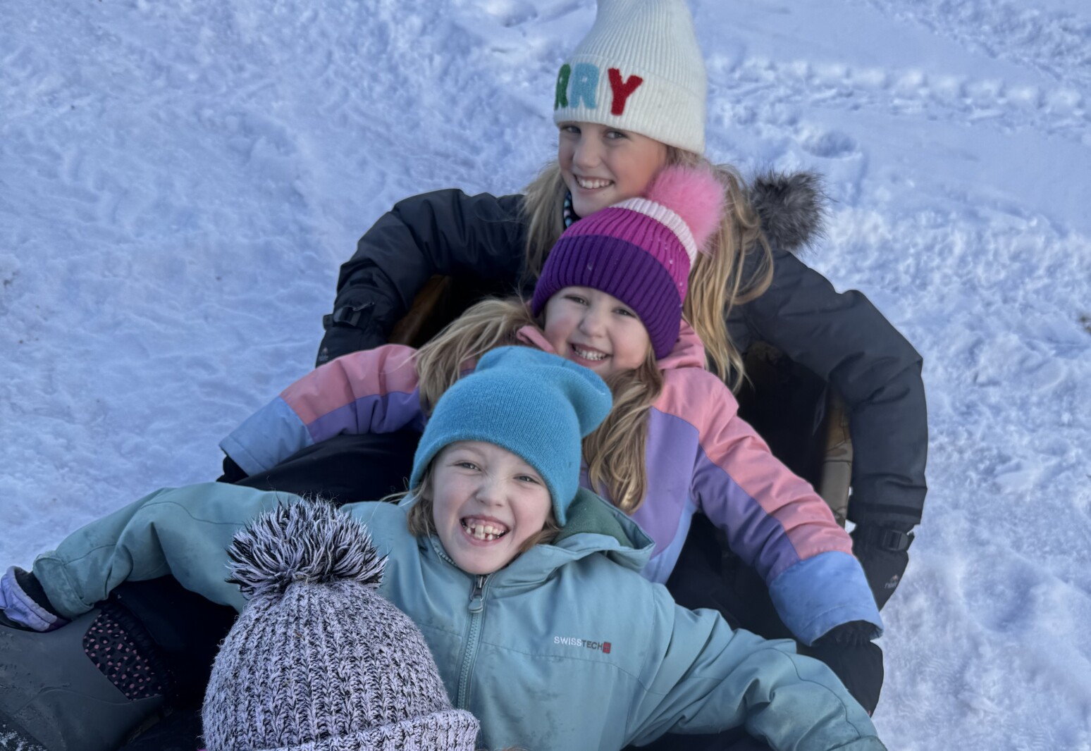 Then we’ll all exit once more after which that’s my favourite, as a result of on Christmas, all of us to go the hill. On Christmas, even Mom and Grandma take a flip down.