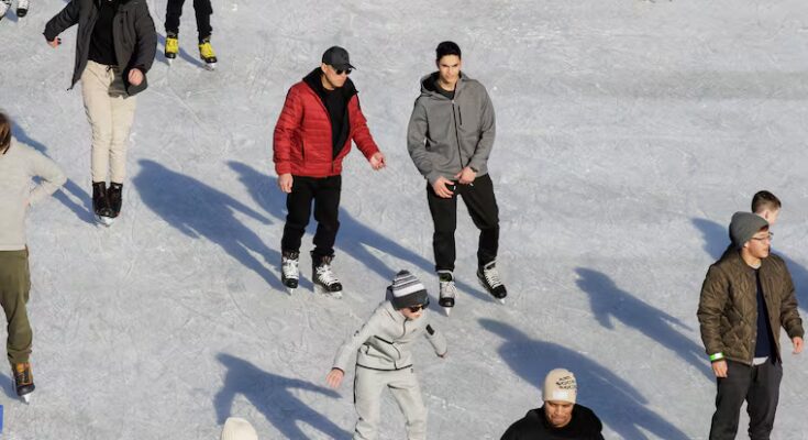People skate at the Independence Blue Cross RiverRink Winterfest on Thursday in Philadelphia. Winterfest is open through March 1.