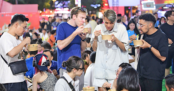 Foreign vacationers savor bowls of ‘pho’ on the Pho Day 2025 occasion in Ho Chi Minh City. Photo: Quang Dinh / Tuoi Tre
