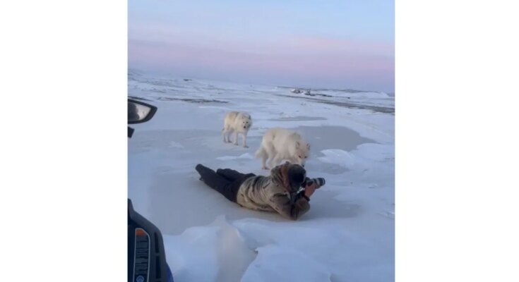 In the viral clip, two photographers could be seen mendacity on the ice with their cameras raised, staying low as two Arctic wolves slowly method them. One wolf strikes shut sufficient to lie down subsequent to one of many photographers, making a exceptional second of proximity. As the video continues, the wolves finally rise and stroll off collectively into the gap earlier than the clip ends.