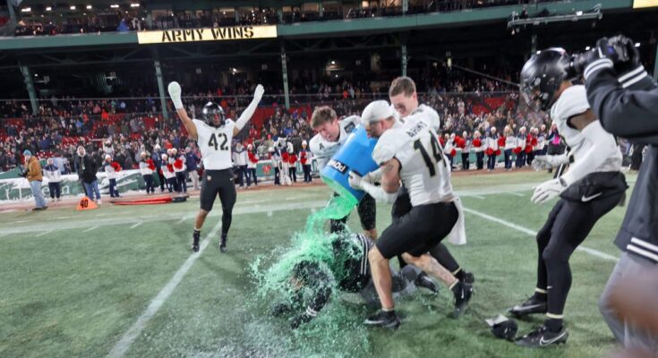 The 58-year-old coach used the best evasive maneuvers he could, however he was lastly chased down and doused by a gaggle of Black Knights gamers led by quarterback Zach Mundell. It was a humorous footnote to Army’s 41-16 victory over UConn within the Wasabi Fenway Bowl at Fenway Park in Boston on Saturday.
