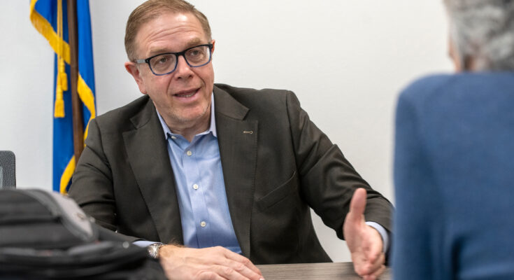 Nevada Gaming Control Board Chairman Mike Dreitzer poses for {a photograph} contained in the company’s Las Vegas places of work on Dec. 8, 2025. (Daniel Clark/The Nevada Independent)