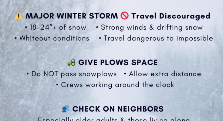 Noel Guttman, Chautauqua County Director of Emergency Services, added, “This storm is ongoing and long-lasting. Conditions will continue to change rapidly, especially under lake effect snow bands. Residents should remain alert, monitor official updates, and be prepared for power outages and extended travel disruptions.”