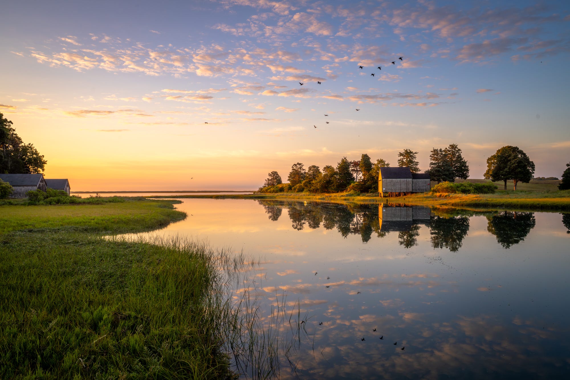 Our final morning, we have been handled to an unbelievable dawn at Salt Pond. The sky was full of birds on the transfer, and this flock of cormorants match the scene completely, even reflecting within the calm waters of excessive tide.