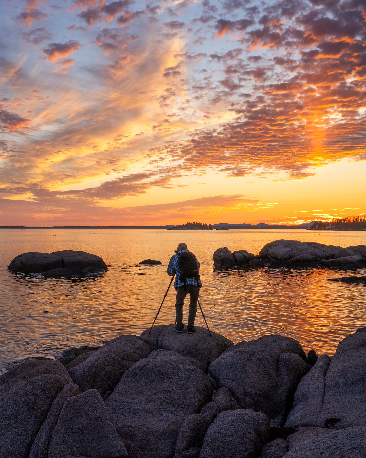 The picture above was captured at an inlet on Green Island, the place we received out and explored. Don constructed this kayak himself on the Wooden Boat School in Brooklin. How cool is that?! The picture beneath options Don photographing a surprising sundown at Sand Beach, among the finest places in Maine.