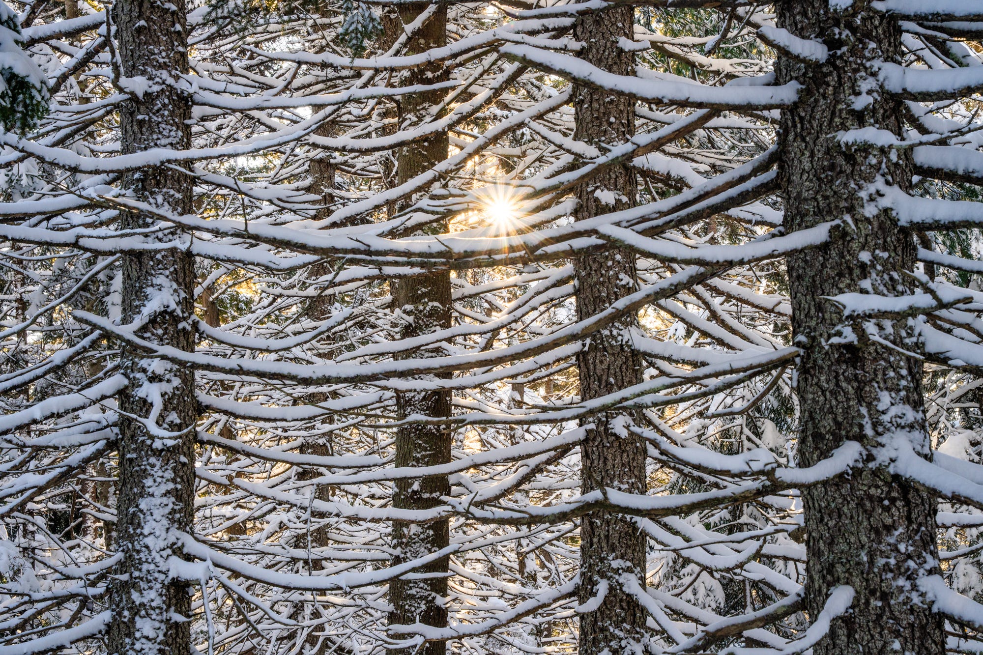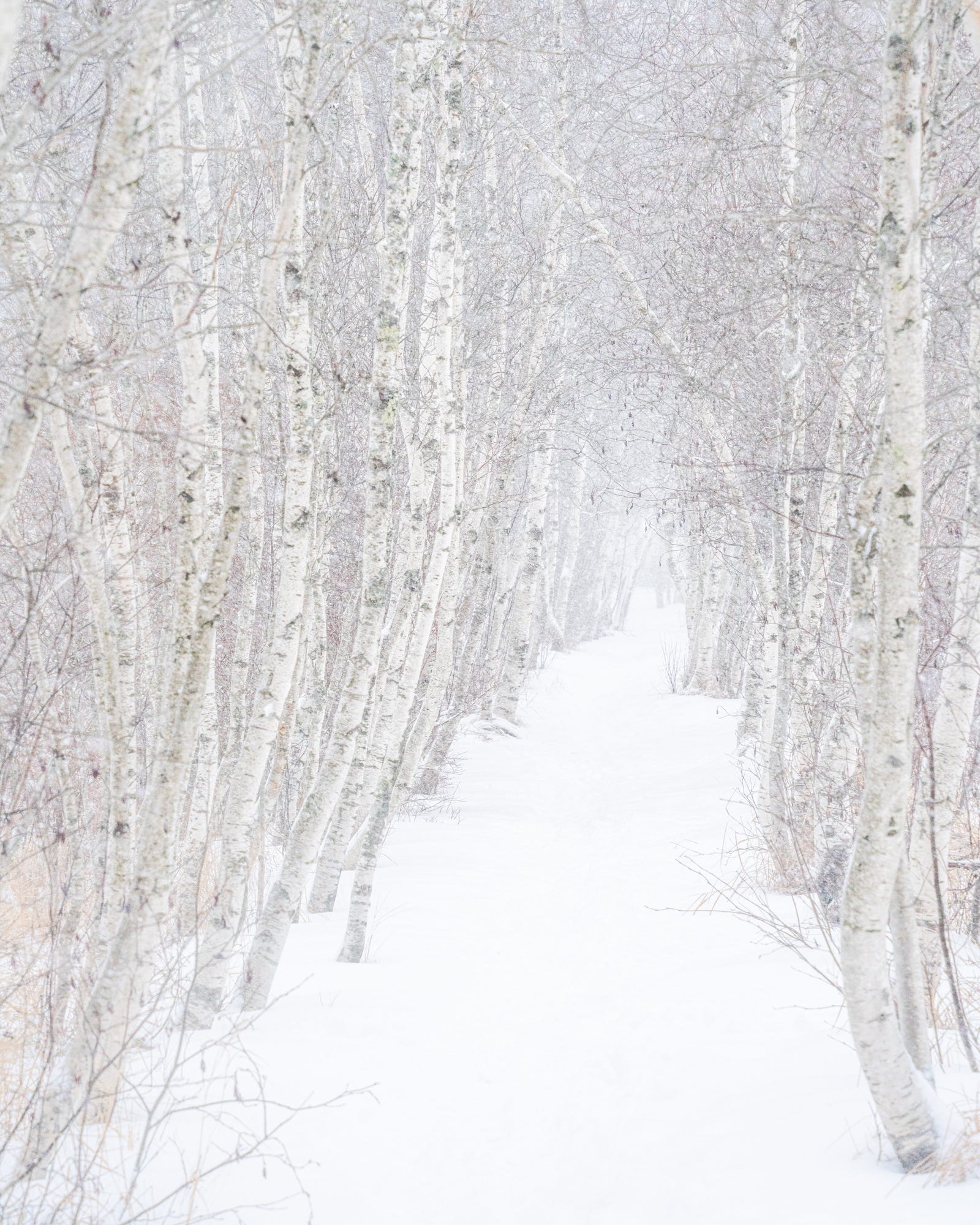 The two earlier photographs are from these journeys. The first one of many snow-covered boughs was taken whereas I used to be xc snowboarding round Jordan Pond and the second was taken throughout a workshop on the well-known birch path in Sieur De Monts. To me they each mirror a deeply felt connection to the brilliant and joyous feeling I get by being in snow.