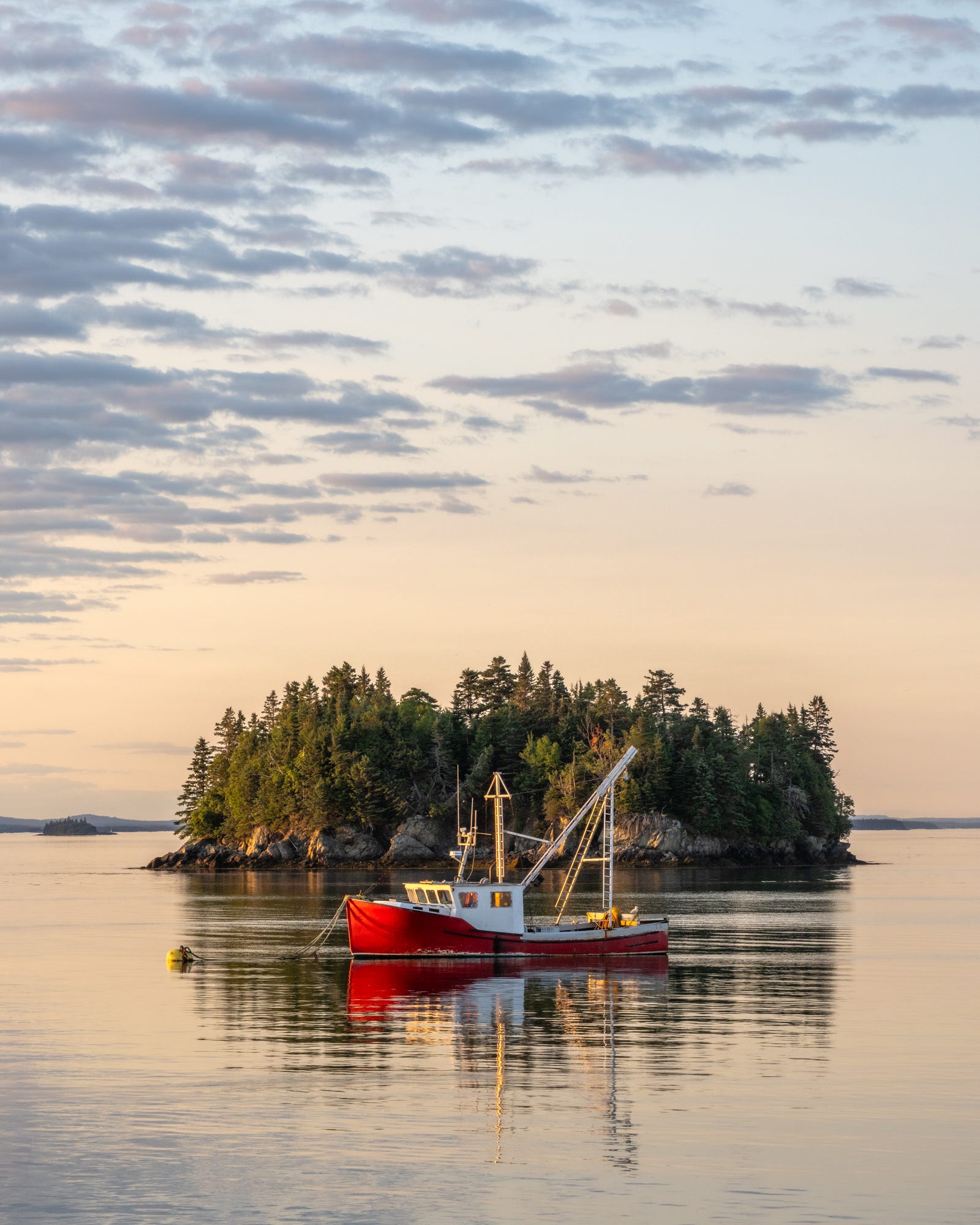 Just a couple of weeks later, I used to be co-leading one other workshop in Lubec with John Putnam. Our first full night with the group featured this unbelievable pink sundown with the wildly stunning Cobscook Bay reflecting the sky in an nearly mirror-calm. I constructed the picture across the f/v Family Tradition, a crimson fishing boat moored simply offshore, in my thoughts the proper topic!