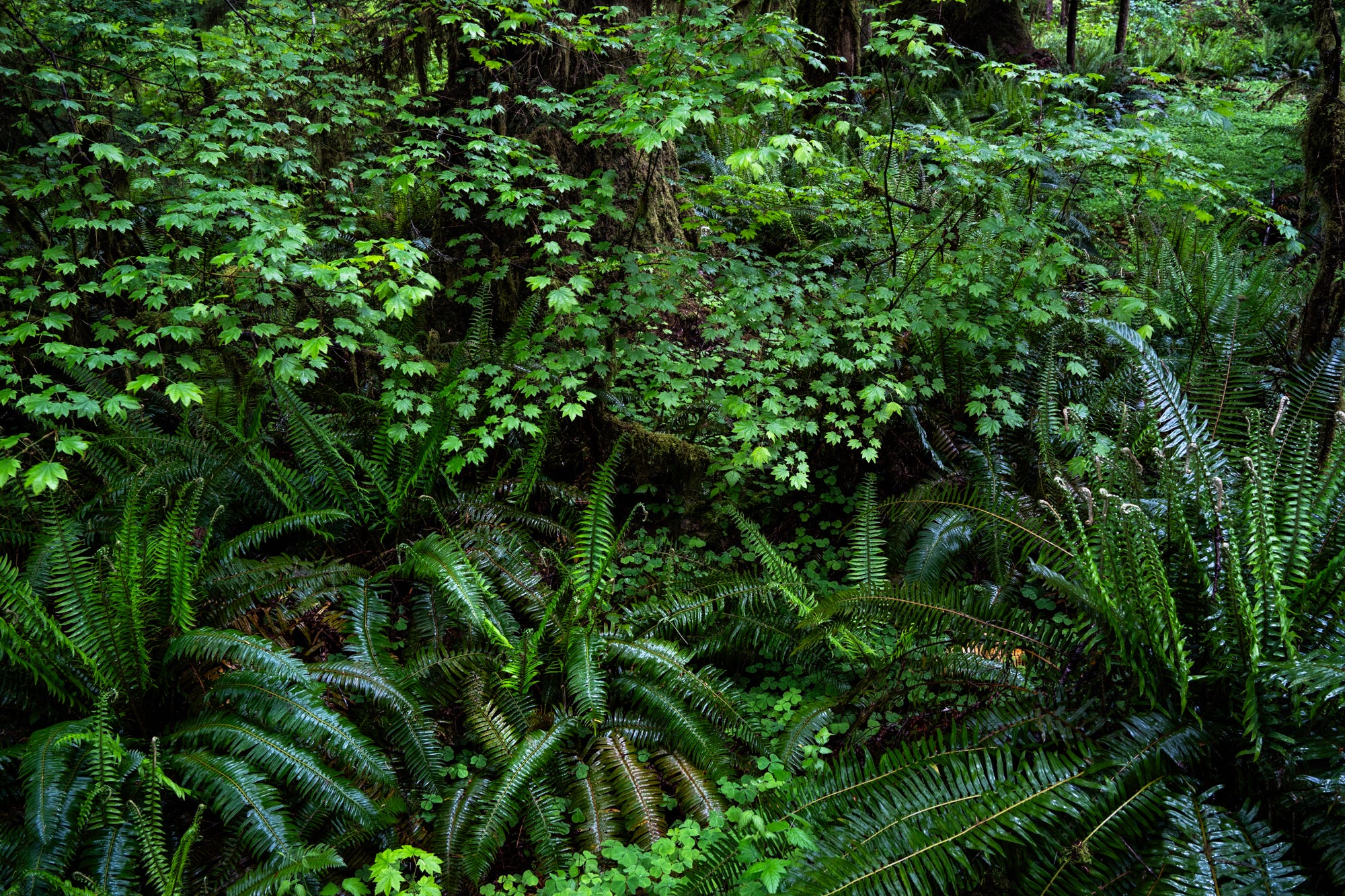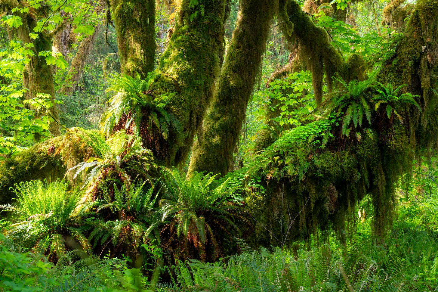 The picture beneath options my favourite scene of the journey, an encounter with the maple timber coated in moss and epiphytic ferns in beautiful mild within the Quinault Rainforest.