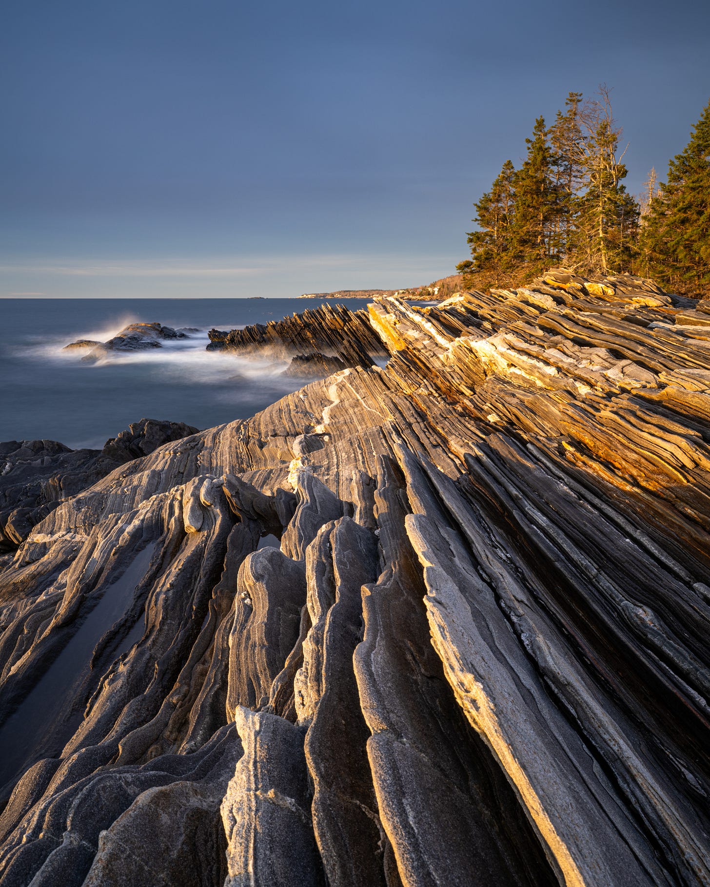 Part of the enjoyment of residing in a brand new place is exploring it photographically. Stick season is the proper time to {photograph} the rocky shoreline since naked timber and even snow aren’t an excessive amount of of distraction. It’s all concerning the geology on show right here, in a location that’s simply up the coast from the same, however far more well-known, Pemaquid Point. Who wants a lighthouse when you have got rocks like this?