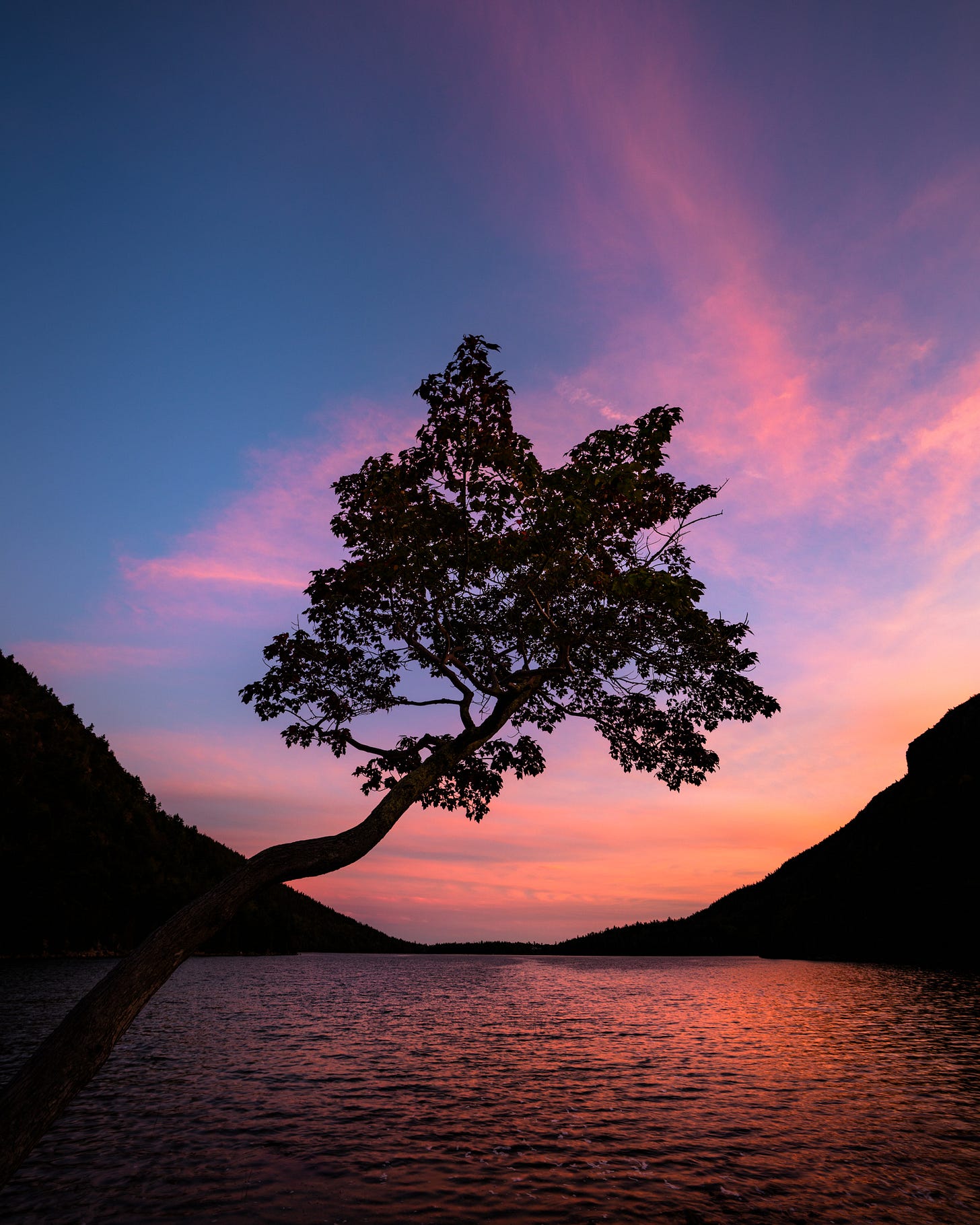 One of the standard moods that I like capturing that I’m positive you’re accustomed to are pink sunrises and sunsets. This one was made on the northern finish of Jordan Pond and required me squeezing myself as far again right into a bush as attainable with a ultra-wide 12mm lens to seize this tree. It was value it!