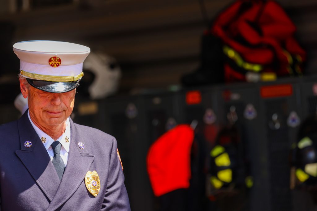 Retiring Aspen Fire Chief Rick Balentine walks out of the engine bay one final time after the switch of command ceremony on Aug. 1 on the Aspen hearth station. It was the top of a 36-year run with the division. He was changed by Jake Andersen.Austin Colbert/The Aspen Times