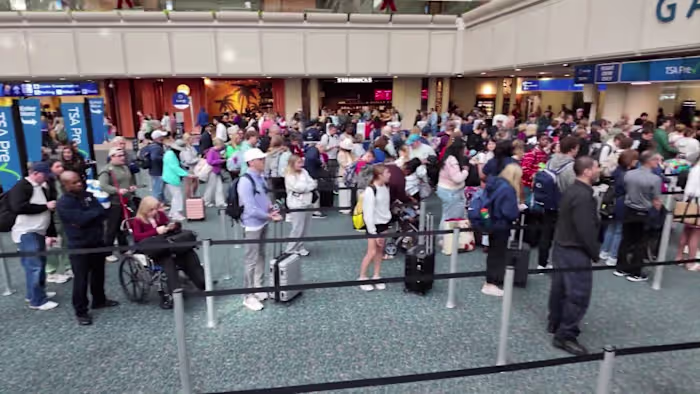 Among these navigating the crowds was Evangeline Howard, touring again to Washington, D.C., together with her household after a Disney trip. She mentioned arriving early was key as traces shortly grew all through the terminal.