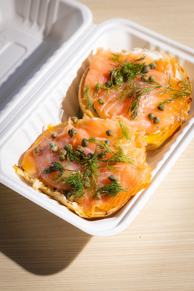 An enormous a part of that bagel-maxing is, in fact, utilizing the very best substances. Consider Luca Bagel’s tackle the quintessential providing from any bagel store: bagel and lox with a schmear. Luca makes use of Nova lox cold-smoked salmon and slices it by hand, together with whipped Philadelphia cream cheese, heirloom tomatoes, crimson onions, thin-sliced English cucumbers and Roland Organic non-pareil capers.
