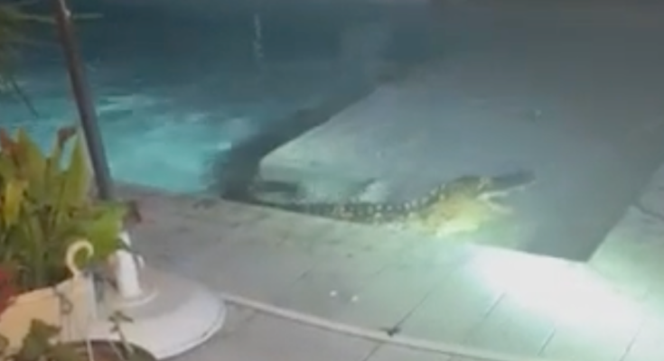NAPLES, Fla.– A virtually 8-foot alligator was wrangled from a midnight dip in a Florida household’s swimming pool this week.